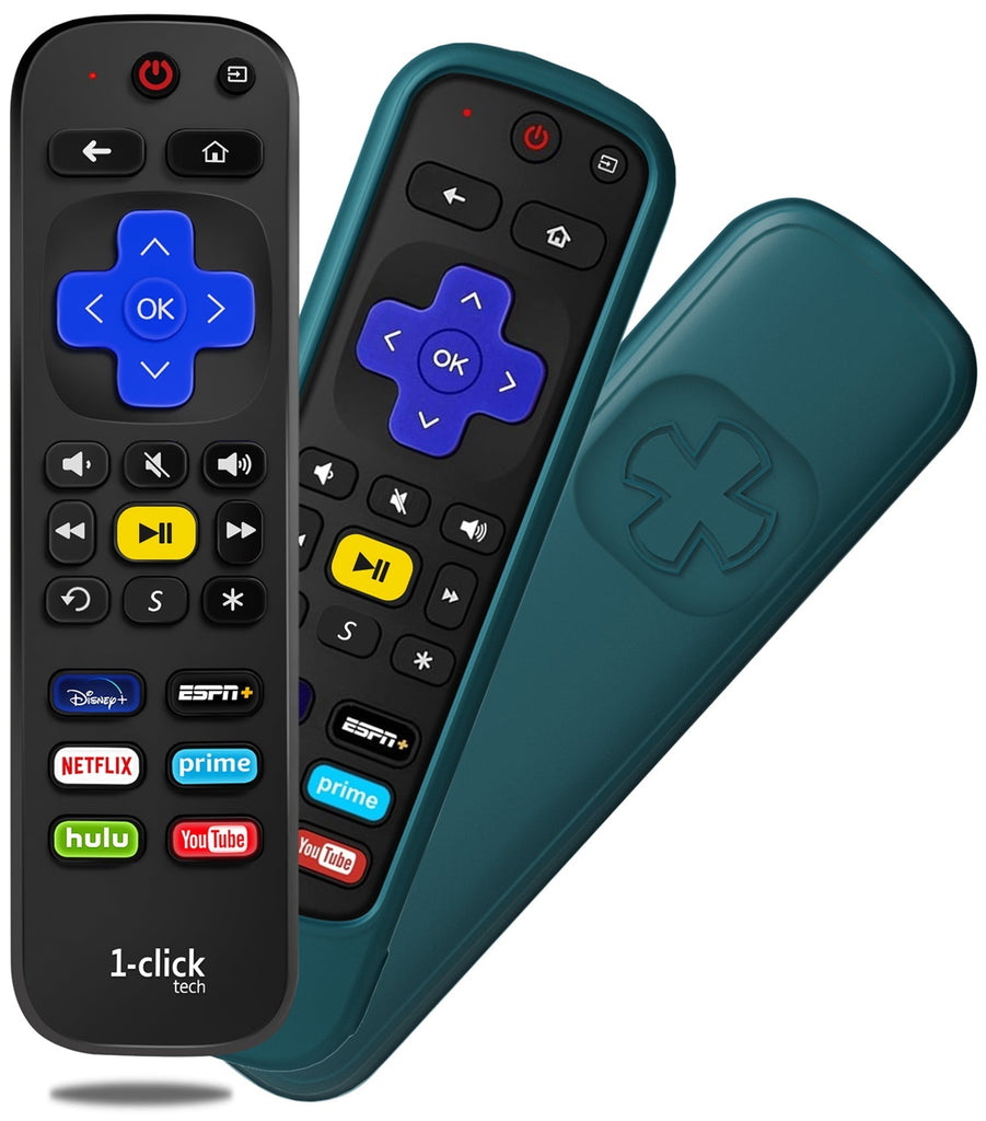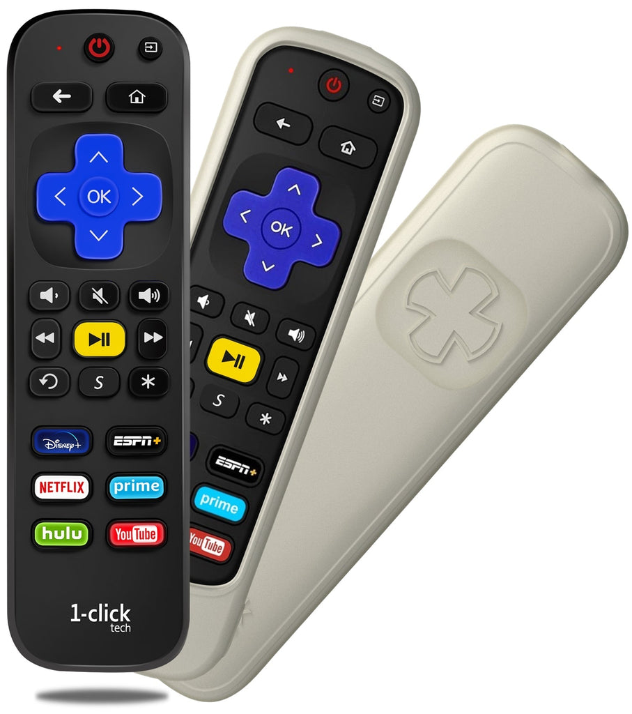 [w/Cover] 1-clicktech Remote for Roku BOX Players Express Premiere Ultra [2-in-1] and All【Roku TVs】